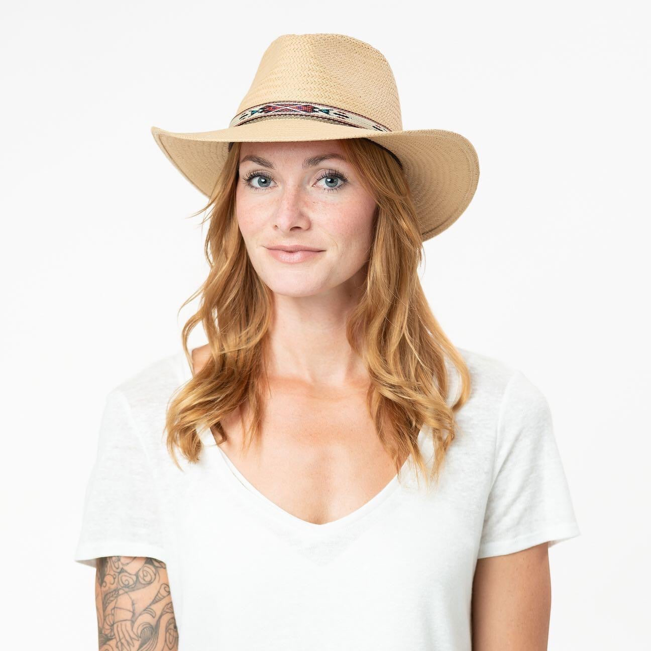 The Derian features a 3” outback brim, a teardrop crown, a Dri-Lex® sweatband, and a handsome southwest-inspired hatband.
