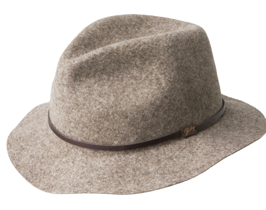The Jackman features our Low-Profile Pinch Front Crown and Casual Brim. It's crafted out of our lightweight 4oz LiteFelt® that's water repellant, shape retentive, packable, complete w dust bag. Vegan leather trim and finished with a Fine Woven Sweatband. LiteFelt.