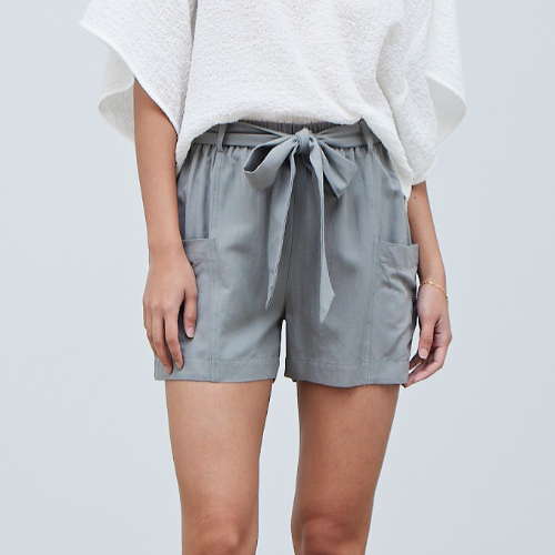 Elastic waist with tie, 2 large front pockets, relaxed fit. 50% Rayon 35% Cotton 15% Linen |