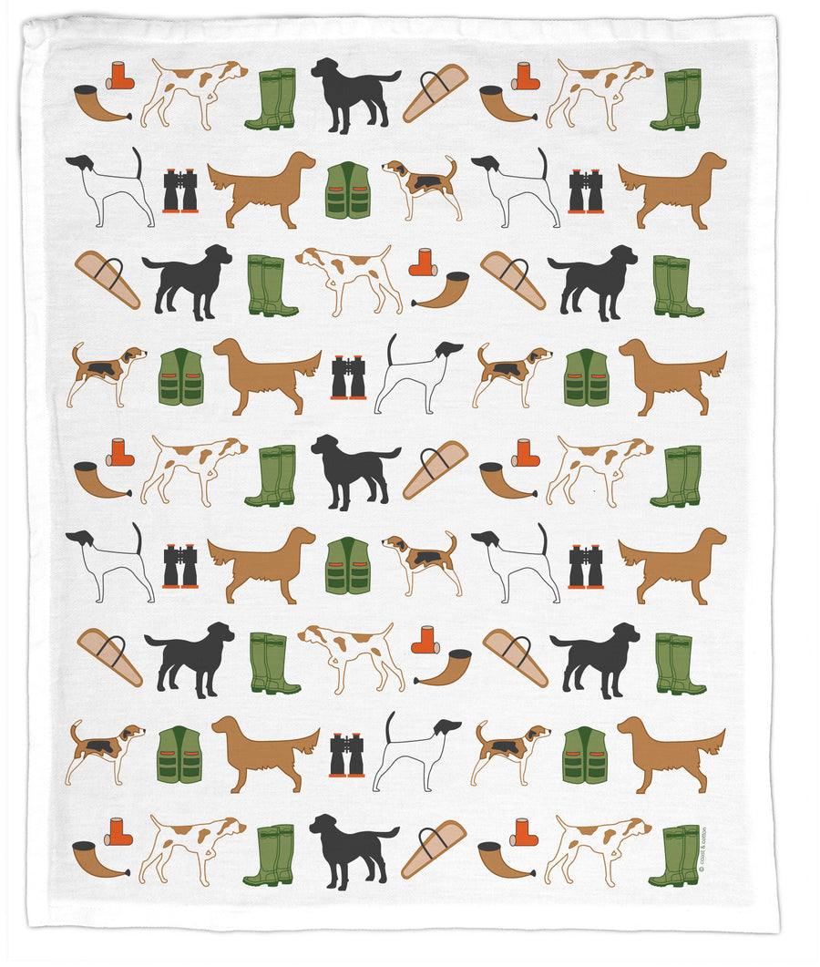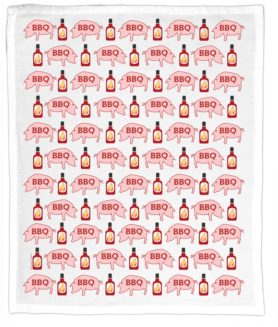 + organic cotton tea towel measuring 20 x 26 inches, printed all over