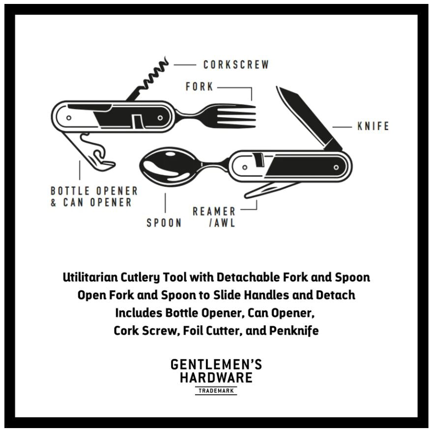 The only tool you'll probably ever need by the campfire! Gentlemen's Hardware presents the Camping Cutlery Tool, a multi-functional and exceptionally durable cutlery tool.