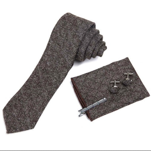 Distinctive men's 100% wool ties - add texture and style to every man's wardrobe, beautifully boxed with cufflinks, pocket square and tie clip. Ideal Men's Accessory. These are the evolution of men's style. Material: 100% Wool. Dimensions: 59 x 2.5.